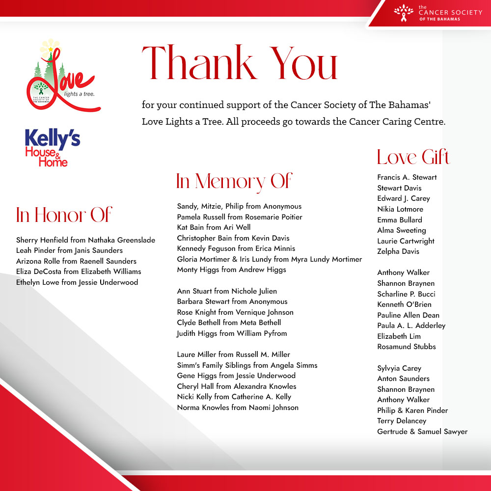 is a non-profit organization established to serve the public through educational programs aimed at bringing awareness to early detection, prevention and treatment of cancer while providing temporary accommodations, as well as social and emotional needs for cancer patients in a peaceful, secure and supportive environment. Our headquarters is located in East Terrace, Centreville (2 Doors South of ZNS) with thirteen (13) Branches throughout the Commonwealth of the Bahamas.